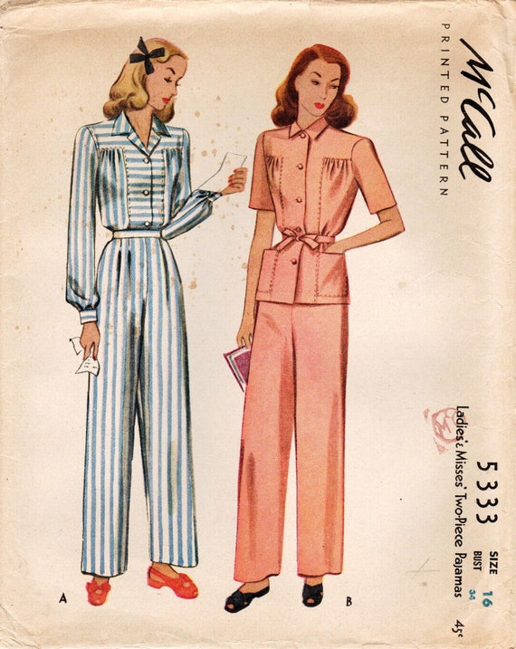 Sz 16 Bust 34 Vintage 1940s Pajama Pattern Mccall Etsy Uk