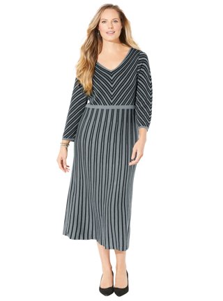 Mixed Media Fit And Flare Sweater Dress English Factory
